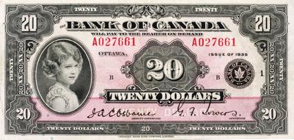 BANK OF CANADA. $20.00. 1935 Issue. English Text. Large Seal. Osborne. BC-9a. No. No. A027661. PCGS graded Very Fine-35.