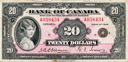 BANK OF CANADA. $20.00. 1935 Issue. English Text. Small Seal. Osborne. BC-9b. No. A058434/D. Very Good.