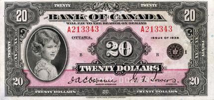 BANK OF CANADA. $20.00. 1935 Issue. English Text. Small Seal. Osborne. BC-9b. No. A213343. OMG graded Very Fine-25.