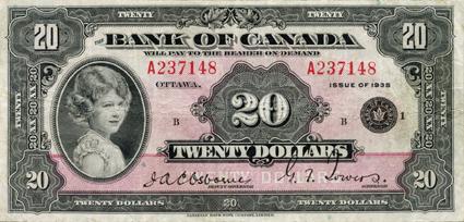 BANK OF CANADA. $20.00. 1935 Issue. English Text. Small Seal. Osborne. BC-9b. No. A237148/B. PMG graded Very Fine-20.