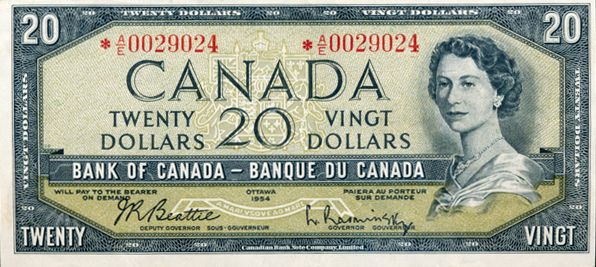 BANK OF CANADA. $20.00. 1943 Issue. BC-41bA. No. *A/E0029024. PCGS graded VF-30 PPQ.