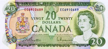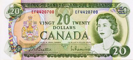 BANK OF CANADA. $20.00. 1969 Issue. BC-50a. Beattie-Rasminsky. No. EC6910689. CCCS graded Choice UNC-63; No. EF4420700. CCCS graded UNC-60. Lot of two (2) notes.