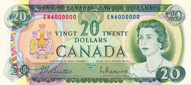 BANK OF CANADA. $20.00. 1969 Issue. BC-50a. No. EN6000000. PCGS Choice AU-55.