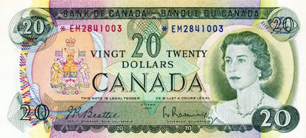 BANK OF CANADA. $20.00. 1969 Issue. BC-50aA. No. *EM2841003. PCGS graded AU-53.