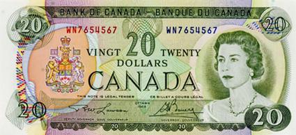 BANK OF CANADA. $20.00. 1969 Issue. BC-50b. Lawson-Bouey. No. WN7654567. CU.