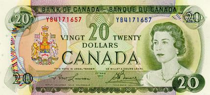 BANK OF CANADA. $20.00. 1969 Issue. BC-50b. Lawson-Bouey. No. WW1825824. CCCS graded UNC-62; No. YB4171657. CCCS graded Choice UNC-63; No. YG4831960. CCCS graded Choice UNC-64. Lot of three (3) notes.