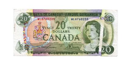 BANK OF CANADA. $20.00. 1969 Issue. BC-50b. No. WL6760235. PMG graded Very Fine-25. Gutter fold error.