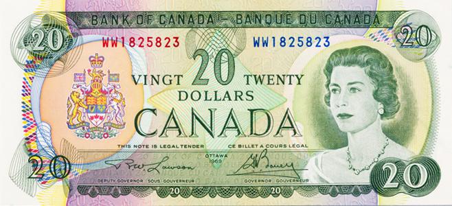 BANK OF CANADA. $20.00. 1969 Issue. BC-50b. No. WW1825823. BCS Original Unc-60; No. WZ4842090. BCS graded Original Choice Unc-62. Lot of two (2) notes.