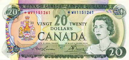 BANK OF CANADA. $20.00. 1969 Issue. BC-50bA. No. *WV1151261. PCGS graded Choice AU-55. PPQ.