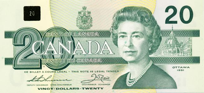 BANK OF CANADA. $20.00. 1991 Issue. BC-58aA-i. Thiessen-Crow. No. EIX2745928 & EIX2745929. With Serif. Both CCCS graded AU-55.