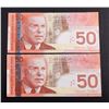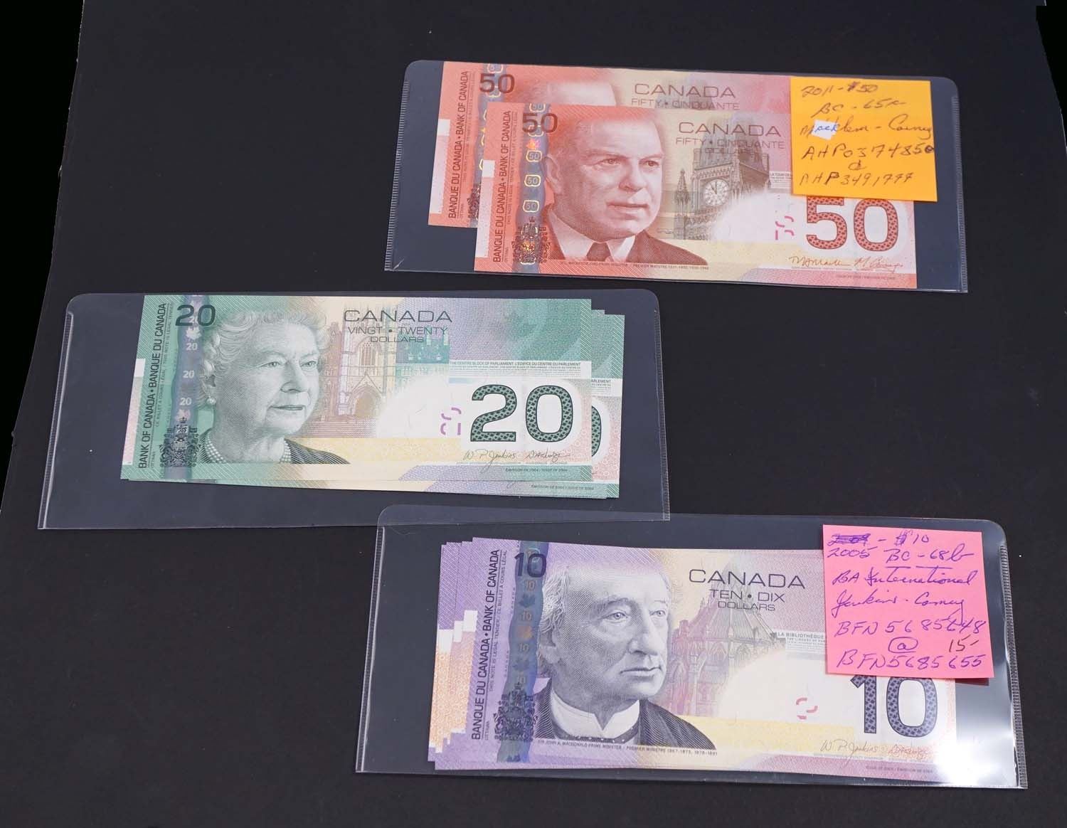 BANK OF CANADA 2001-2004. Lot of 14 Banknotes $10-50.00 in VF-UNC