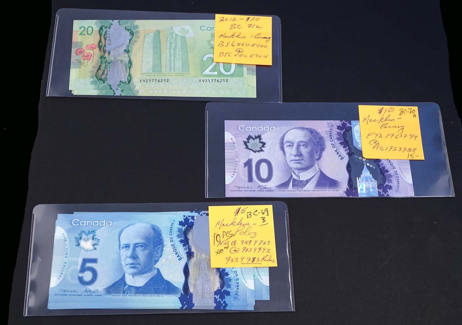 BANK OF CANADA 2013-2017. Lot of 21 Banknotes of $5 - $20 in VF-UN