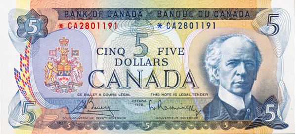 BANK OF CANADA. $5.00. 1972 Issue. BC-48aA. Bouey-Rasminsky. No. *CA2801191. PCGS graded Choice Unc-64. PPQ.