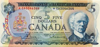 BANK OF CANADA. $5.00. 1972 Issue. BC-48aA. No. *CA3046344. AU; No. *CC2895109. Unc; No. *CD2998387. VF. Lot of three (3) replacement notes.