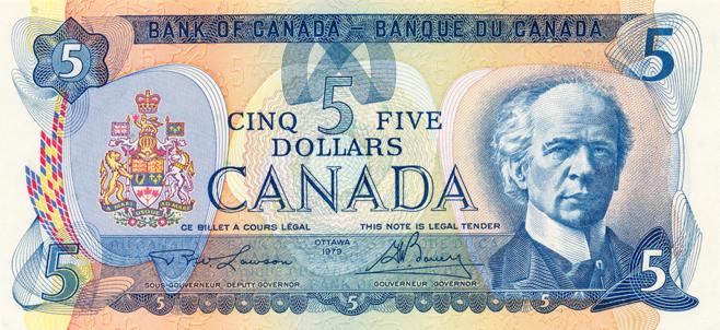 BANK OF CANADA. $5.00. 1979 Issue. BC-53aA. No. 31000002271. PCGS graded Choice AU-58. PPQ.