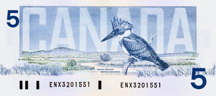 BANK OF CANADA. $5.00. 1986 Issue. BC-56aA-i. Blue B.P.N. No. ENX3201551. CU.