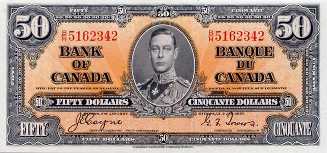 BANK OF CANADA. $50.00. 1937 Issue. BC-26c. Coyne-Towers. No. B/H5162342. PMG graded Choice Unc-64.