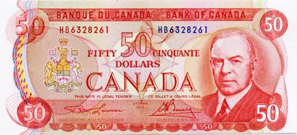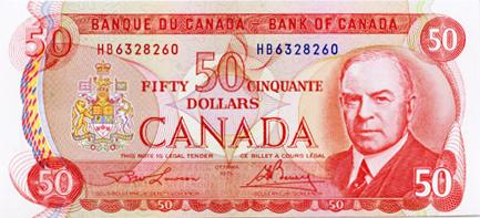 BANK OF CANADA. $50.00. 1975 Issue. BC-51a. Lawson-Bouey. No. HB6328260 & HB6328261. Both CCCS AU-55.
