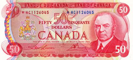 BANK OF CANADA. $50.00. 1975 Issue. BC-51aA. No. *HC1126045. PCGS graded Choice Unc-64. PPQ.