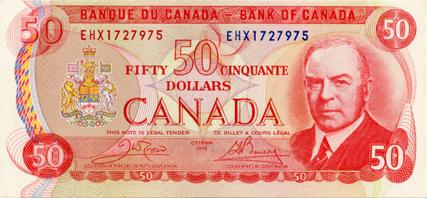 BANK OF CANADA. $50.00. 1975 Issue. BC-51bA. Crow-Bouey. No. EHX1727975. CCCS graded Almost Unc-50.