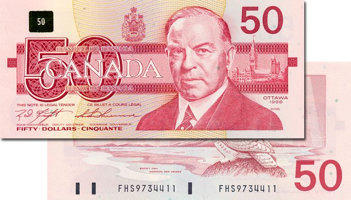 BANK OF CANADA. $50.00. 1988 Issue. BC-59c. No. FHS9734410 and FHS9734411. Both CCCS graded Gem Unc-65.