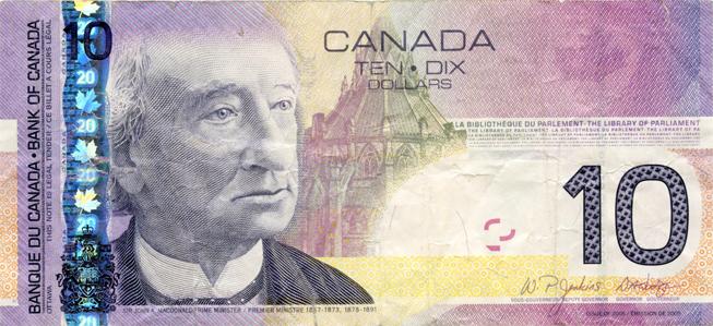 BANK OF CANADA. A scarce Error note. A $10.00 note printed on paper intended for the $20.00 notes, with the $20.00 hologram. Charlton E-6. (page 357), 2011 edition. $10.00. 2005 Issue. BC-68a. No. BTU2174146. Fine.