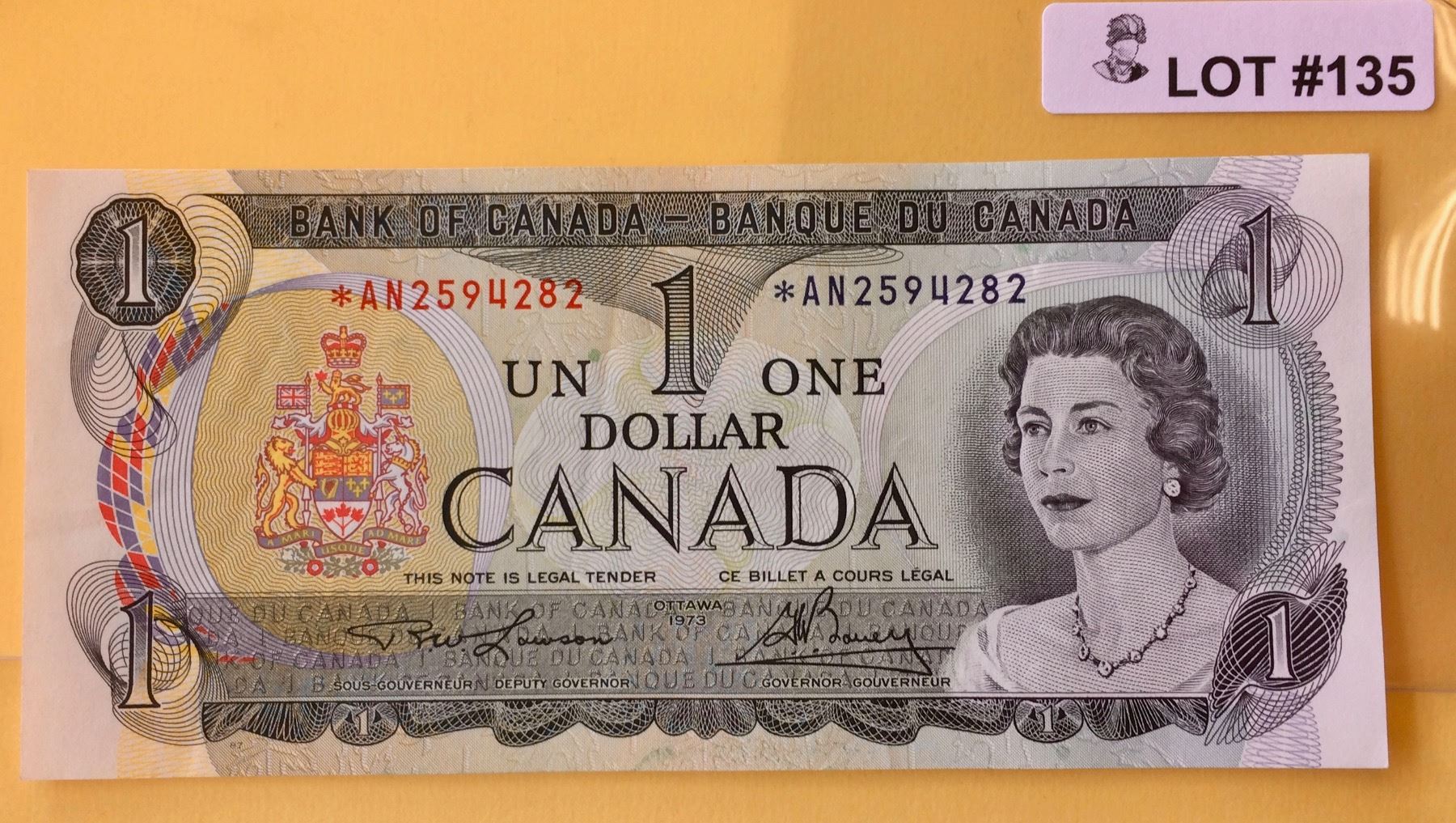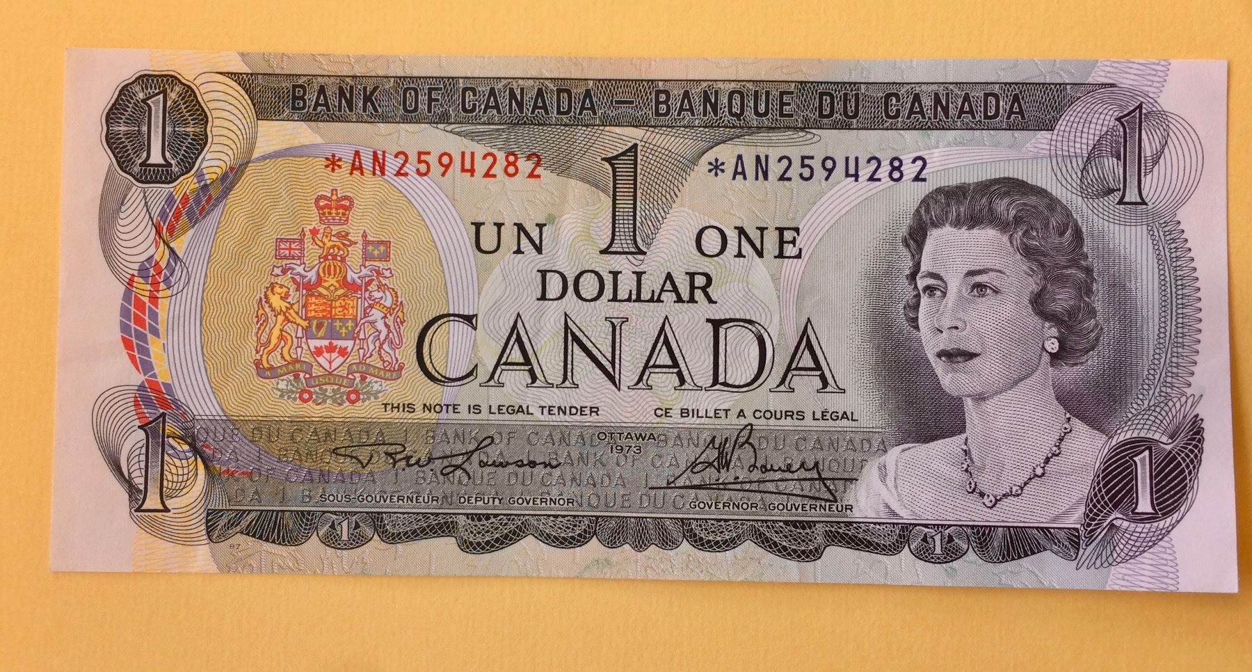 BANK OF Canada 1973 ONE DOLLAR, LAWSON-BOUEY, REPLACEMENT NOTE. BC-46aA. SERIAL: *AN2594282
