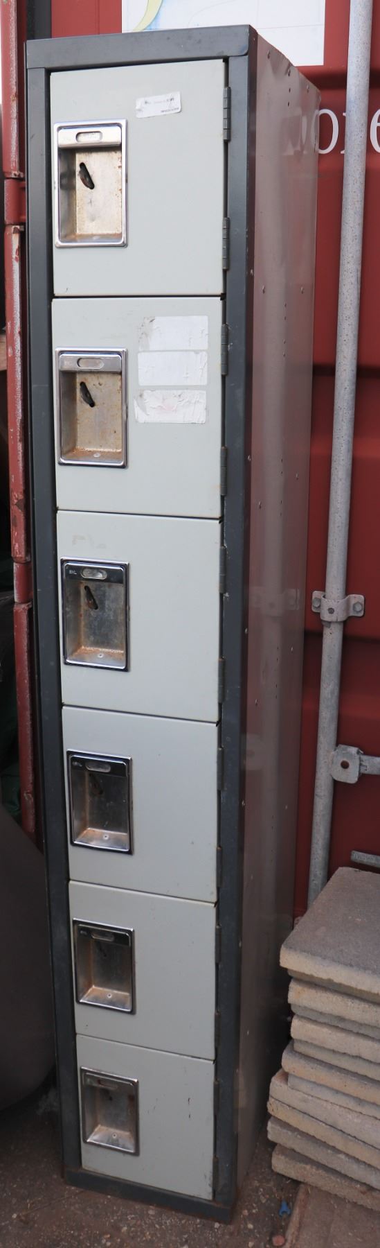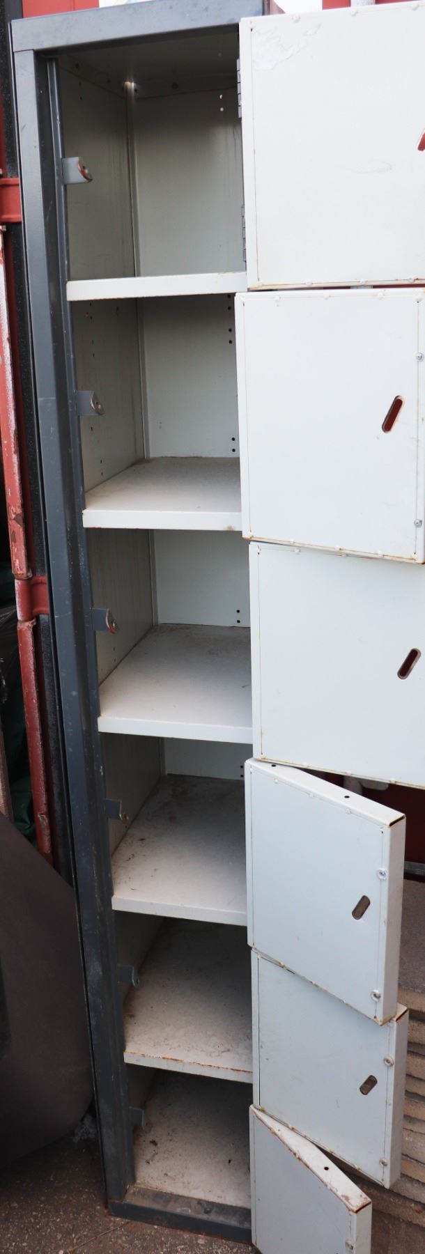 APPROX 6' TALL X 18" X 12". STORED INSIDE/ OUTSIDE SPACE IN BUILDING PERMITTING. VERY LIGHT SURFACE RUST STARTING