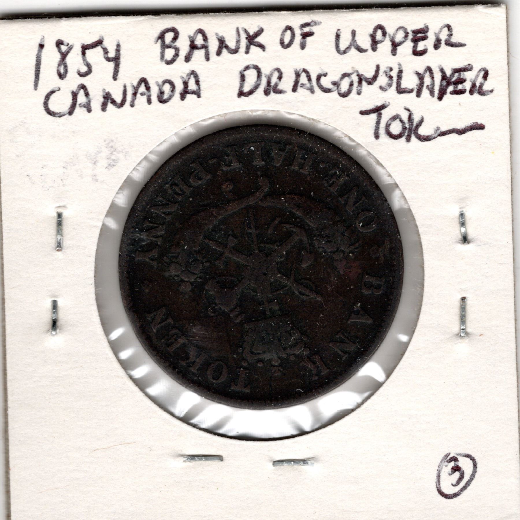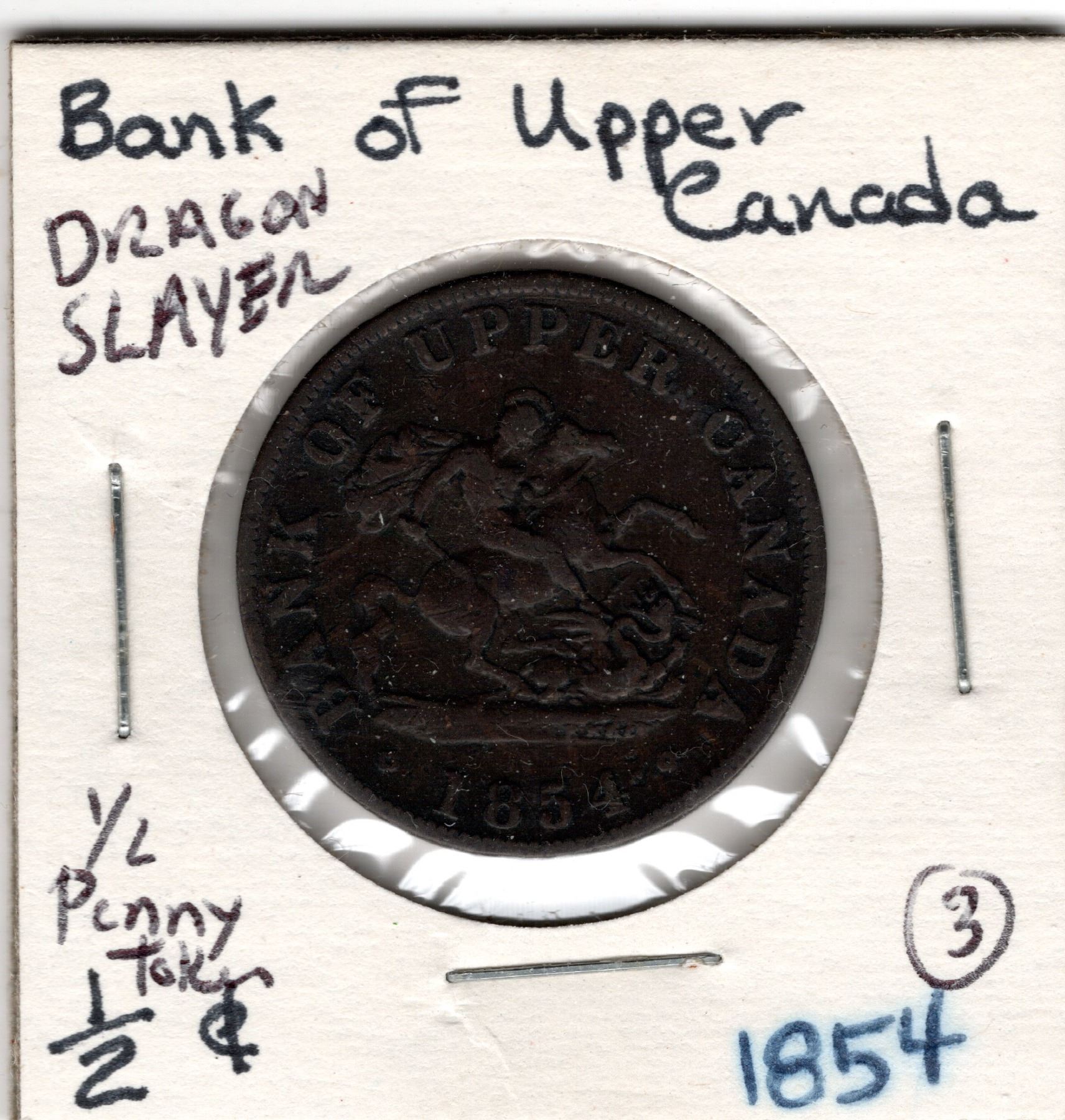 BANK OF UPPER CANADA, 1854 HALF PENNY BANK TOKEN, DRAGON SLAYER