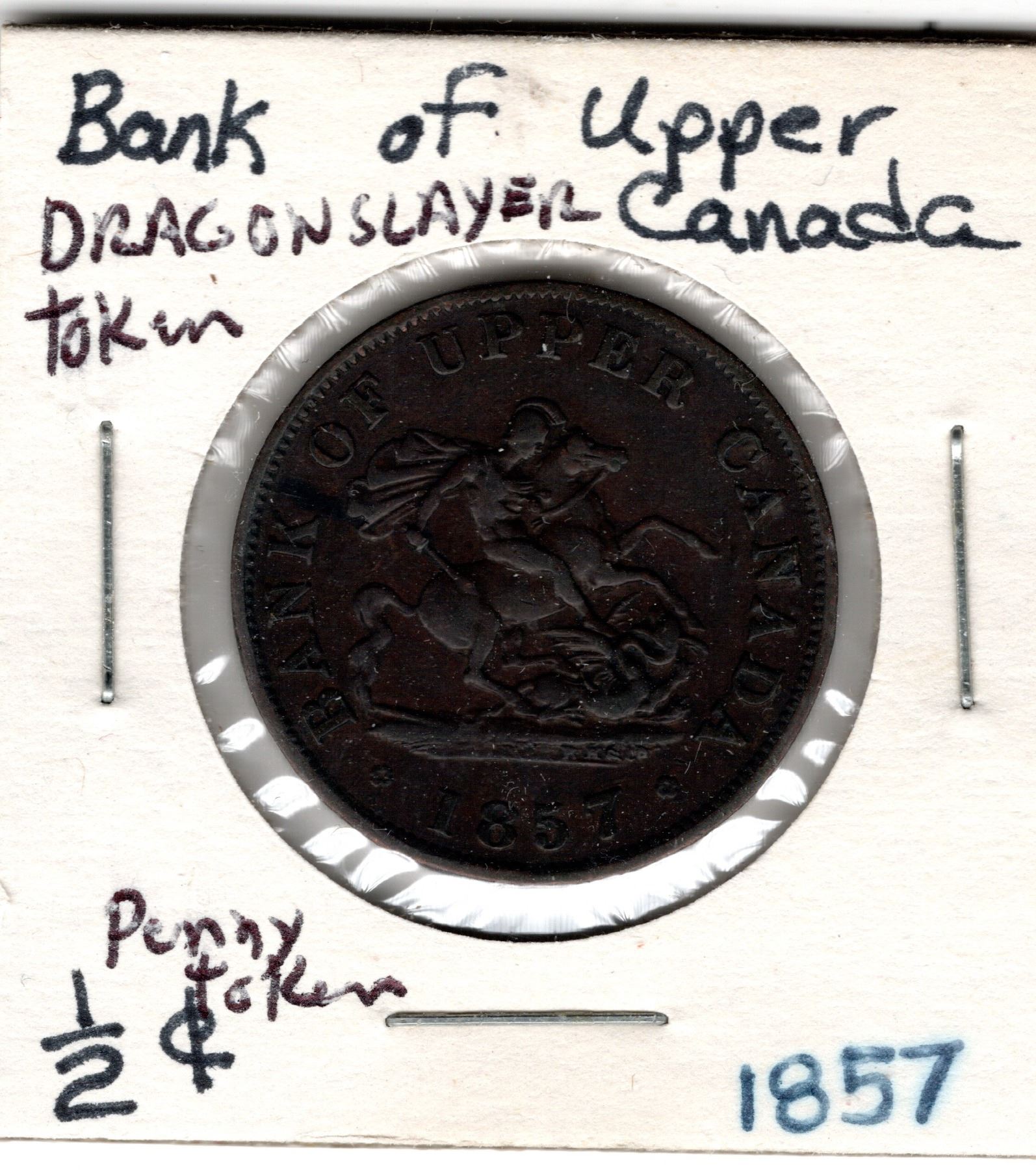 BANK OF UPPER CANADA, 1857 HALF PENNY BANK TOKEN, DRAGON SLAYER