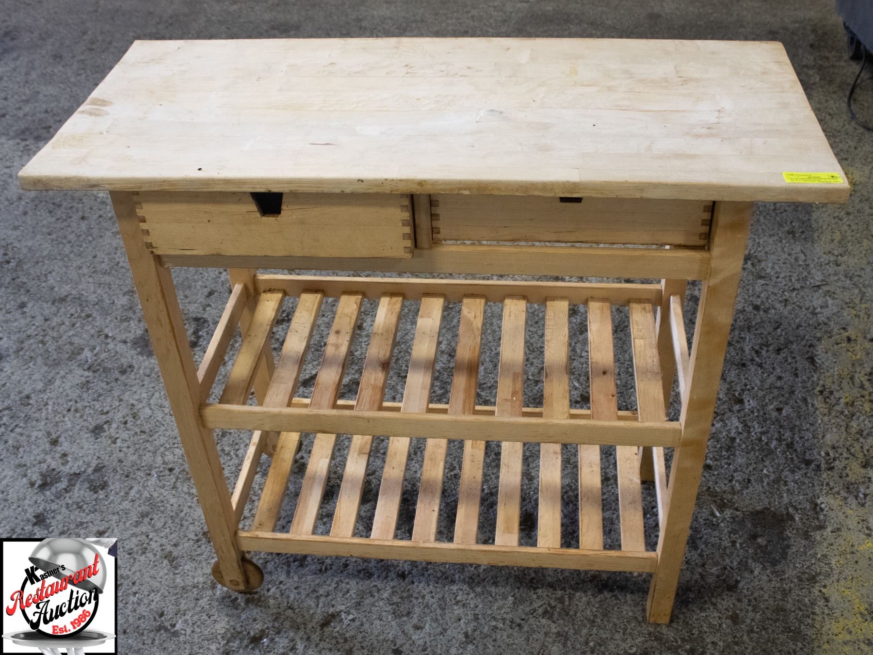 TWO DRAWERS AND TWO UNDERSHELFS, APPROX 40" X 17" X 36" * BUTCHER BLOCK TOP MAY HAVE A SIGNIFICANT DEPRESSION * ** DEPRESSION WILL NOT PROPERLY REFLECT IN PHOTOGRAPH IN PERSON VIEWING IS RECOMENDED BEFORE PLACING YOUR BID ** * ALL BANK SEIZURE ITEMS ARE SOLD AS IS WHERE IS ABSOLUTLY NO REFUNDS OR RECONSIGNMENT *