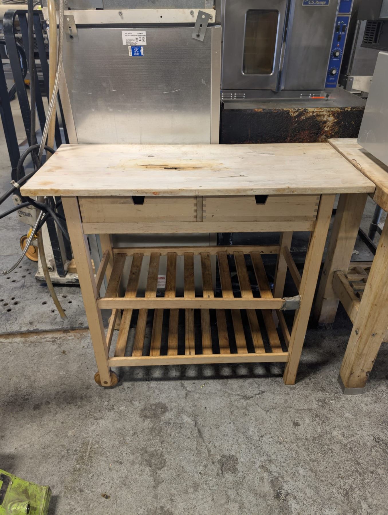 W/ TWO UNDER SHELFS, * WORKING SURFACE HAS A HOLE IN THE MIDDLE * 39" X 17" X 35" * ALL BANK SEIZURE ITEMS ARE SOLD AS IS WHERE IS ABSOLUTLY NO REFUNDS OR RECONSIGNMENT *