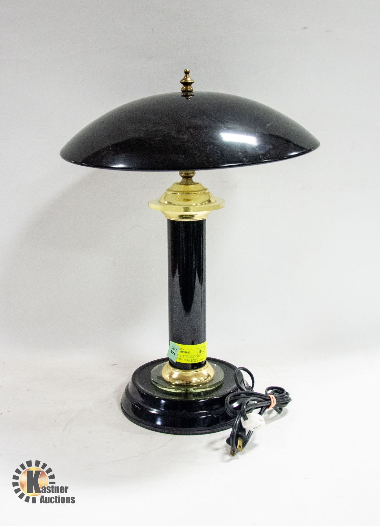BANKERS STYLE BLACK AND BRASS DOUBLE BULB LAMP
