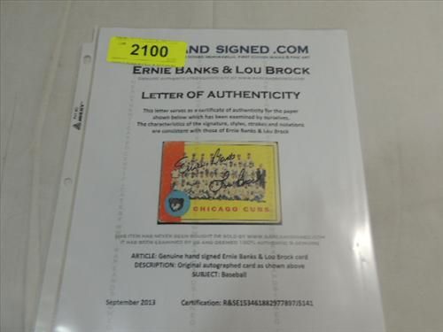 BANKS & BROCK ON CARD SIGNATURE AUTOGRAPH. NO COA. AS SHOWN. VIEW PICTURE FOR DETAIL.