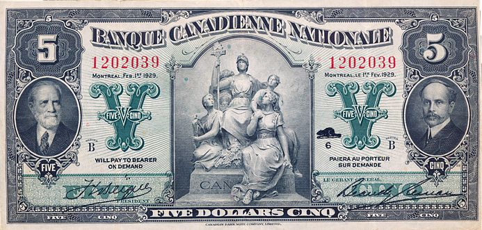BANQUE CANADIENNE NATIONALE. $5.00. Feb. 1, 1929. CH-85-12-02. No. 1202039. PMG graded Very Fine-35.