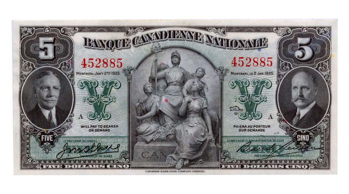 $5.00. Jan. 2, 1935. CH-85-14-02. No. 452885/A Unc.