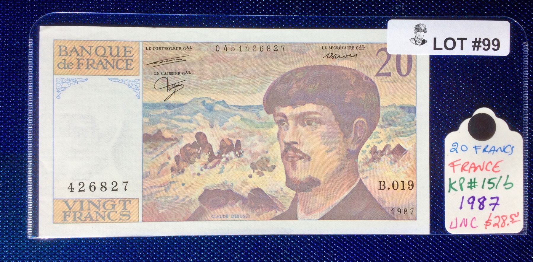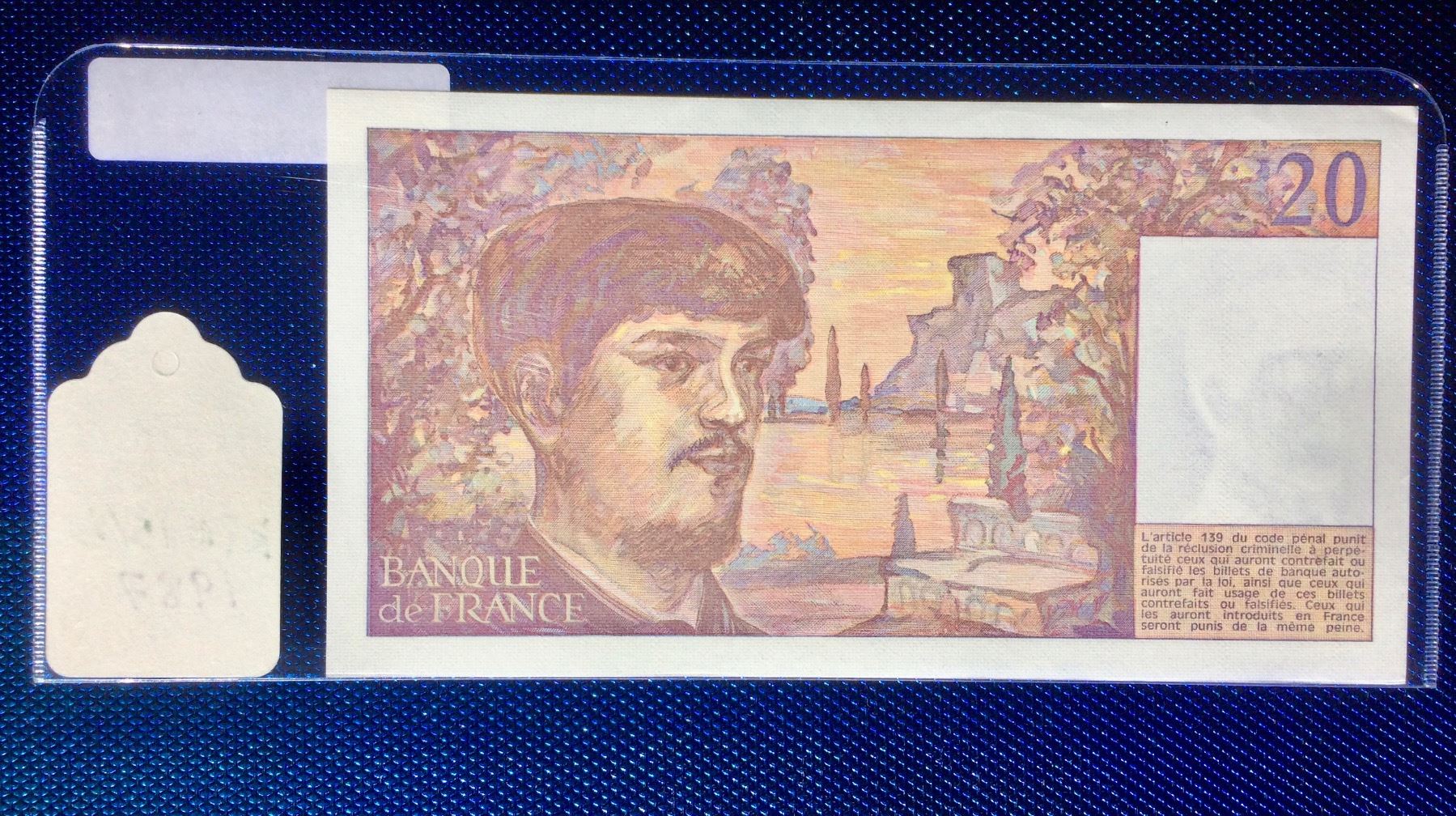 BANQUE DE France 1987 VINGT FRANCS UNC - KP#151b, SERIAL:426827