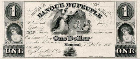 BANQUE DU PEUPLE. $1.00. Oct. 1, 1839. CH-575-14-02P. A Face Proof on thick card. Also, a Back Proo