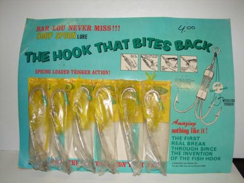 BAR-LOU FISHING LURES. Soup Spoon lure. Consists of 6 unopened lures on cardboard sheet.