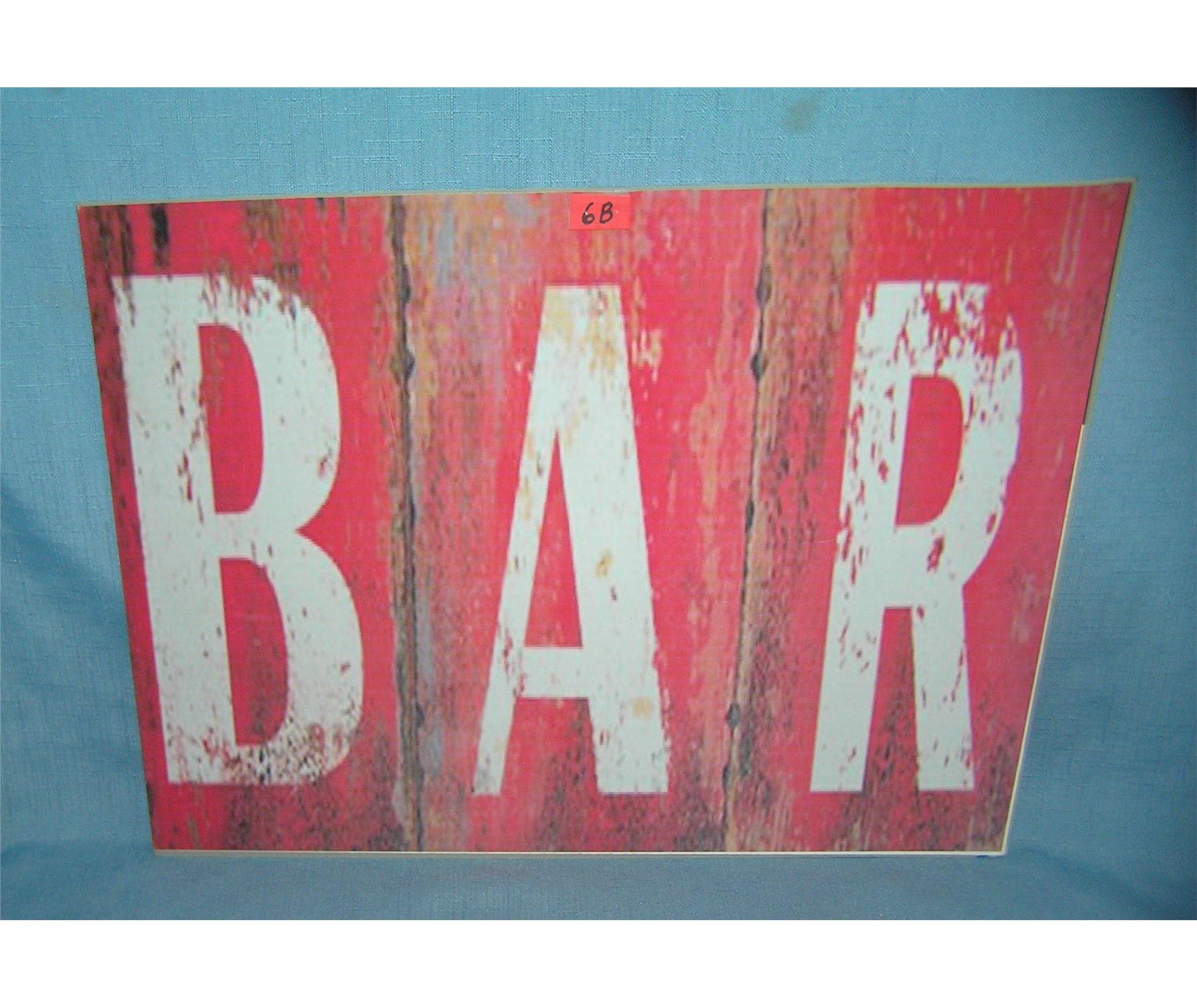 BAR retro style advertising sign 12 inches by 16 inches est. value $40.00-$50.00