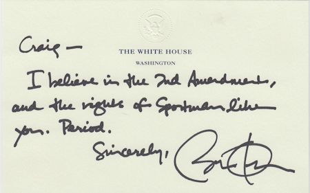 "I believe in the 2nd Amendment, and the rights of Sportsmen like you. Period."