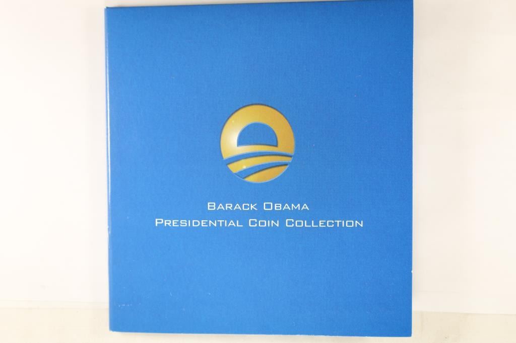 COLORIZED GEORGE WASHINGTON DOLLAR, COLORIZED KENNEDY HALF DOLLAR, COLORIZED ILLINOIS STATE QUARTER AND COLORIZED HAWAII STATE QUARTER. ALL UNC IN NICE BLUE FOLIO ALBUM