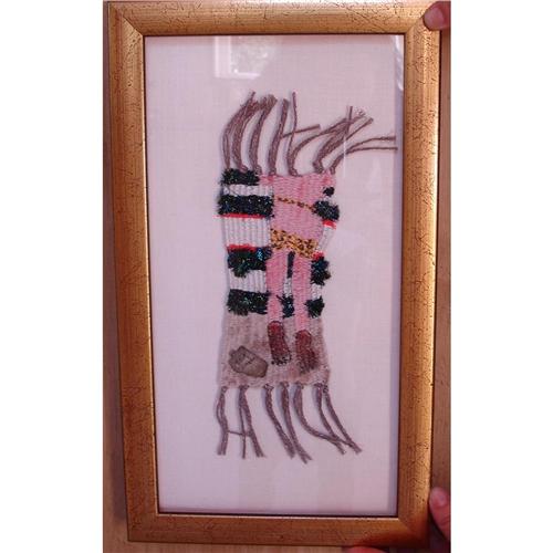 "Wagner’s Sandy Toes" Tapestry with fibers, silver, watercolor, and marker.