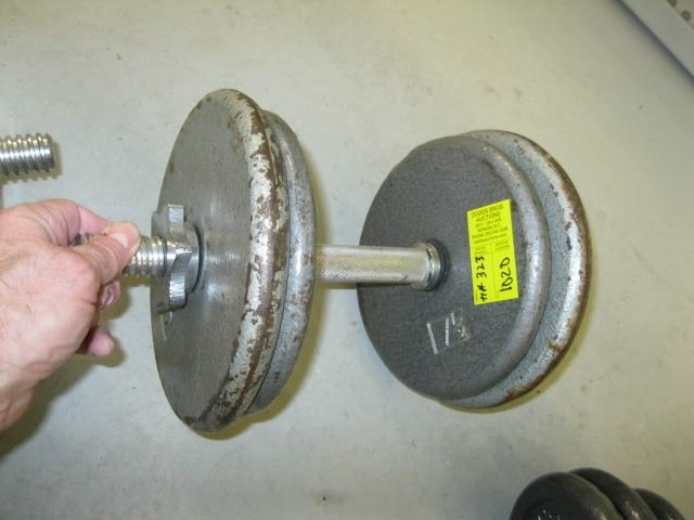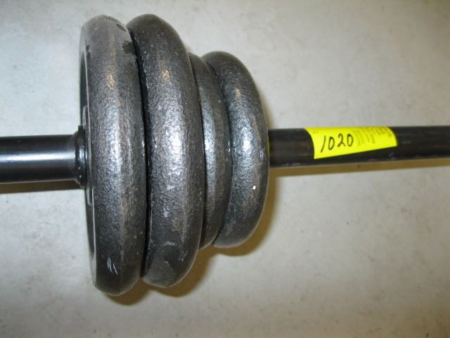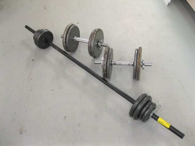 BARBELL W/WEIGHTS & 2 DUMBBELLS