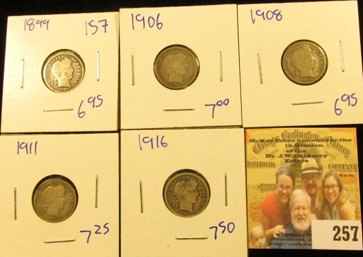 BARBER DIME LOT DATED 1911, 1906, 1908, 1916, AND 1899