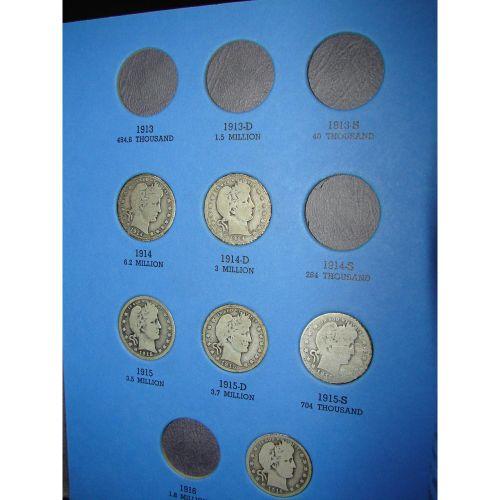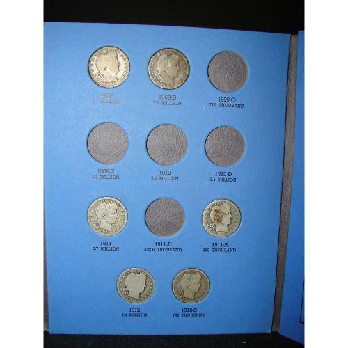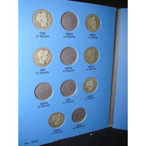 ALBUM OF BARBER QUARTERS. 1906 to 1916. Missing 1906-D, 1907-D, 1907-S, 1908, 1908-S, 1909-O, 1909-S, 1910, 1910-D, 1911-D, 1913, 1913-D, 1913-S, 1914-S, & 1916.