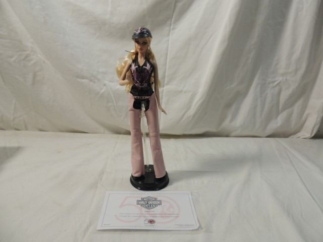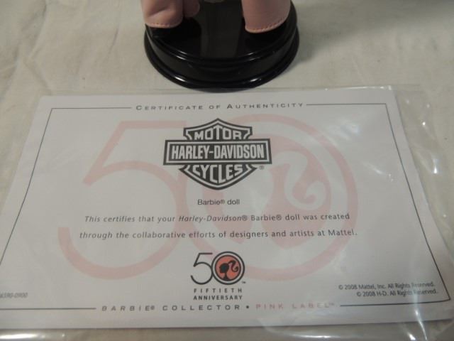 NICE PINK LABEL SPECIAL EDITION HARLEY DAVIDSON BARBIE ISSUED FOR BARBIE 50TH ANNIVERSARY. COMPLETE WITH ORIGINAL OUTFIT, AND COA. AS SHOWN.