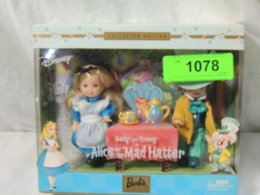 BARBIE COLLECTIBLES DISNEY ALICE IN WONDERLAND, KELLY AND TOMMY AS ALICE AND THE MAD HATTER NEW IN BOX COLLECTIBLE STORY BOOK COLLECTION AS SHOWN SEE PHOTO FOR MORE DETAILS.