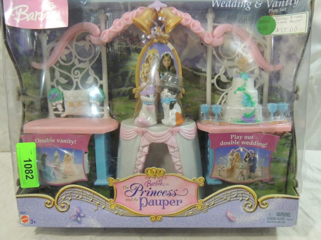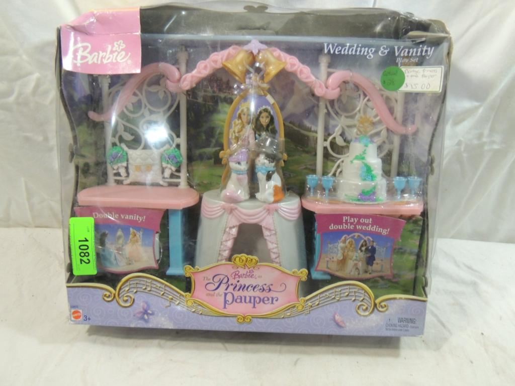 WEDDING AND VANITY PLAYSET, BARBIE THE PRINCESS AND THE PAUPER NEW IN BOX PLAYSET AS SHOWN SEEE PHOTO FOR MORE DETAILS.