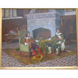 BARBIER, F.A. "Sharing a Glass of Wine". Huile sur toile, signée. École française 19e S. Oil on canvas, signed. 19th C. French School. 23" x 29" - 58.3cm x 73.6cm. $1200/1600